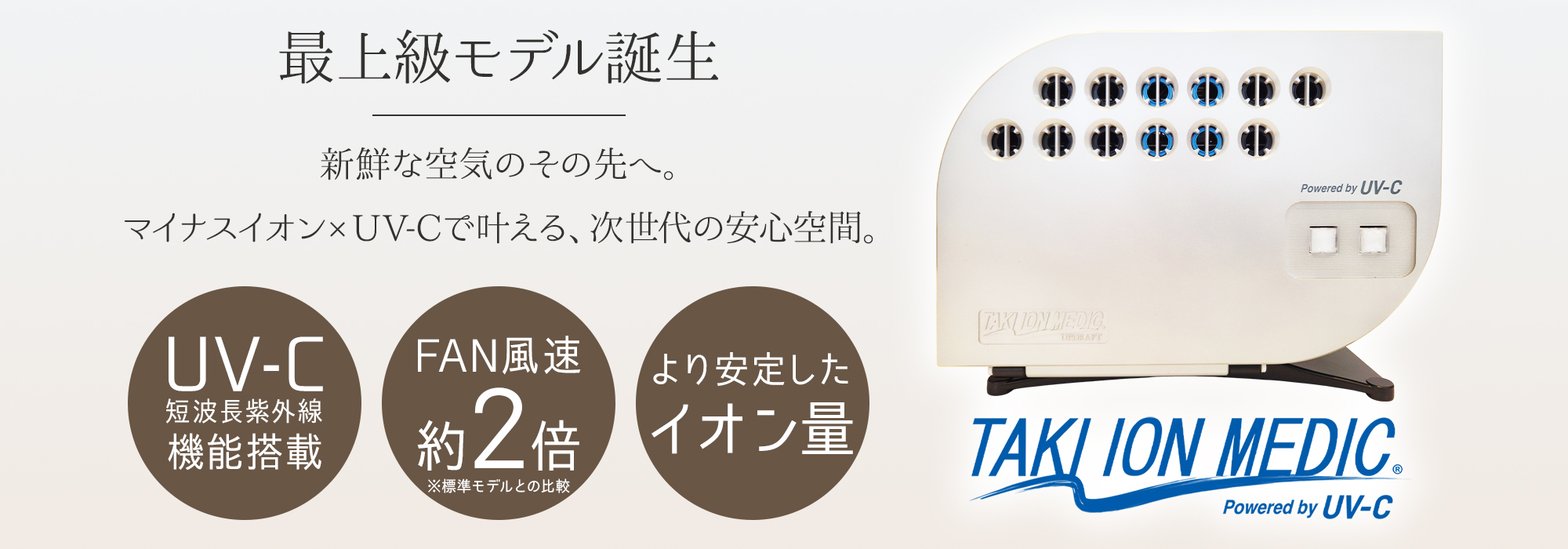マイナスイオンは、「空気のビタミン」ともいわれている大切な空気中の要素です。「たきION MEDIC(イオンメディック)」はそんなマイナスイオンの働きに着目しました。